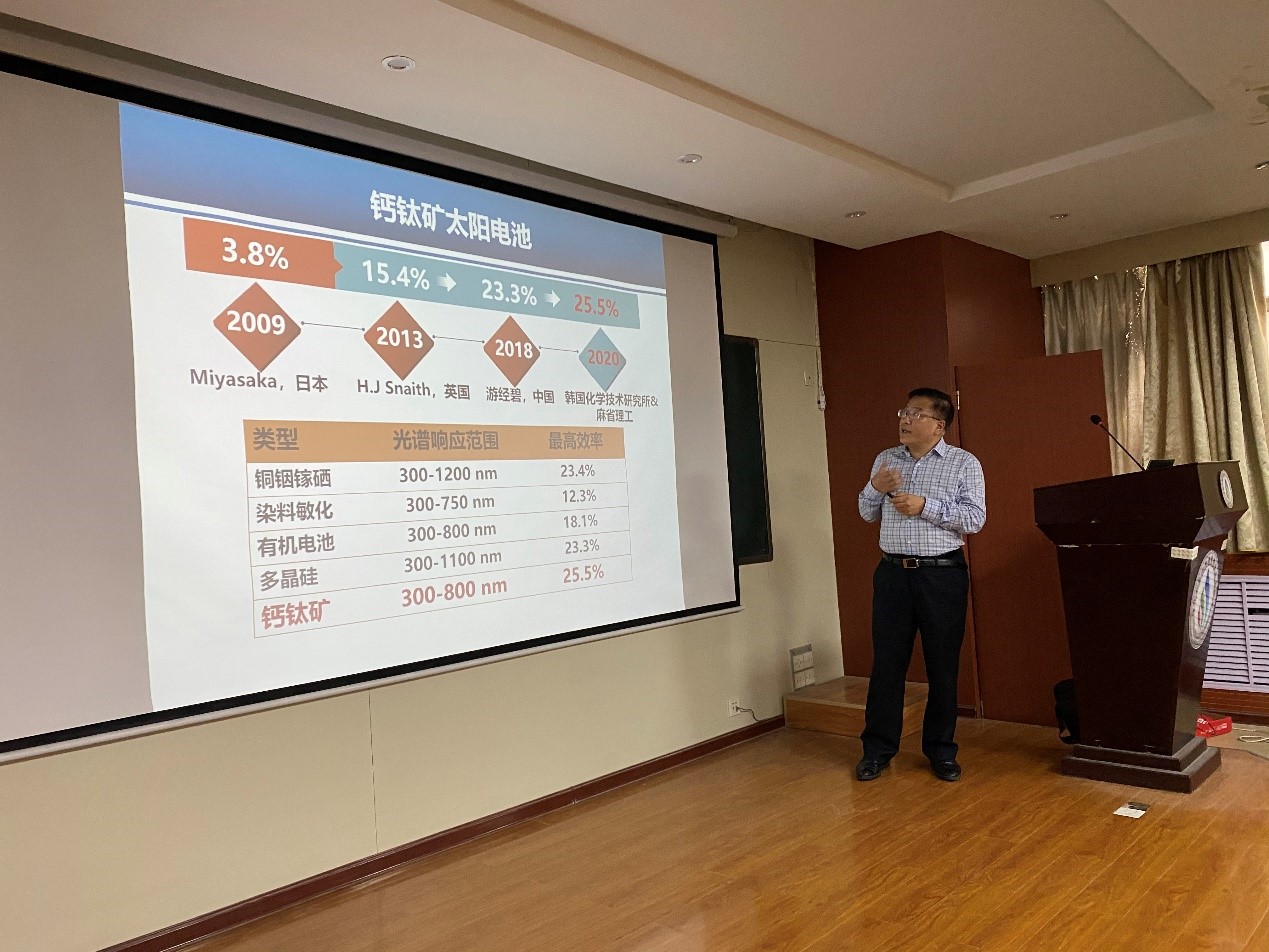 宋宏伟教授围绕稀土发光材料、钙钛矿太阳能电池以及钙钛矿量子点开展研究,详细介绍了新型光电材料的合成、器件工艺制备、稀土掺杂纳米晶与贵金属之间耦合作用以及贵金属各向异性与纳米晶之间的光场调控等研究工作,实现了高效的光电转换,展开说明了新型光电材料及器件研究在太阳能电池、光电探测器及生物等领域的前沿应用。另外,宋老师在稀土掺杂钙钛矿量子点的研究领域,首次报道了稀土离子掺杂CsPbI3钙钛矿量子点,不仅实现了钙钛矿量子点的整体发光效率,同时拓宽了发光范围实现了红外发射,相关工作受到了同行的高度认可,精彩的研究成果和生动的讲解赢得了大家热烈的掌声。