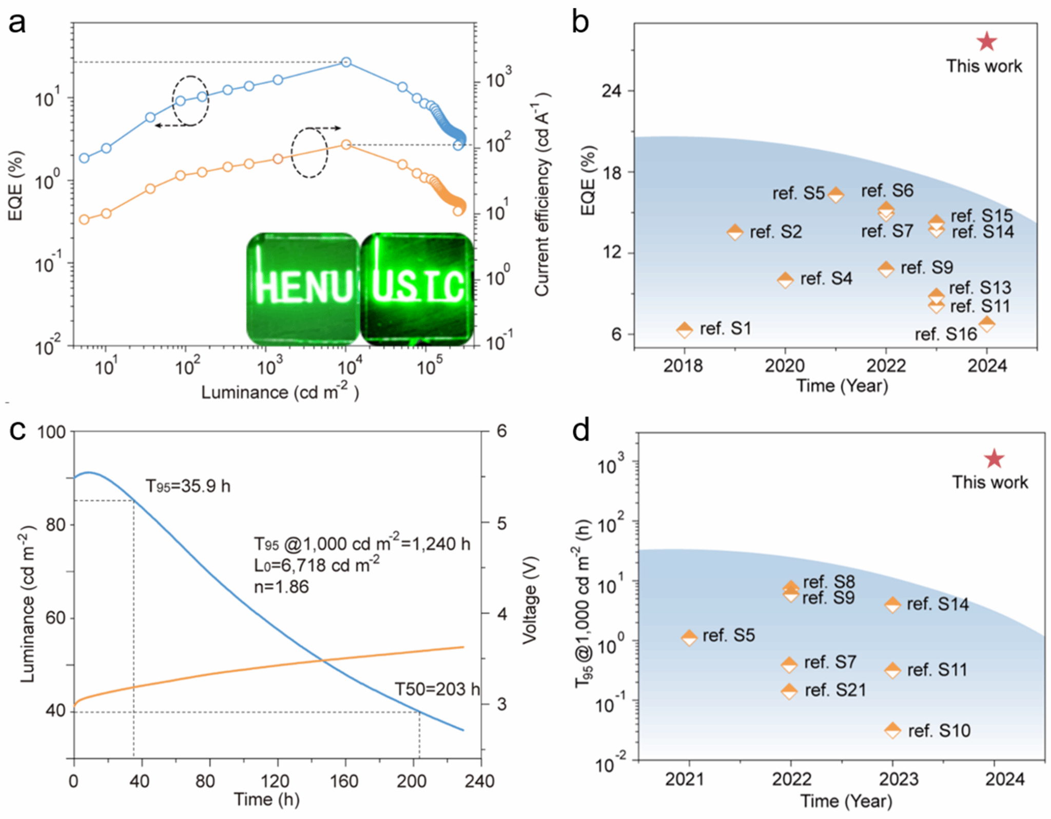 图3:绿色QD-LEDs器件性能