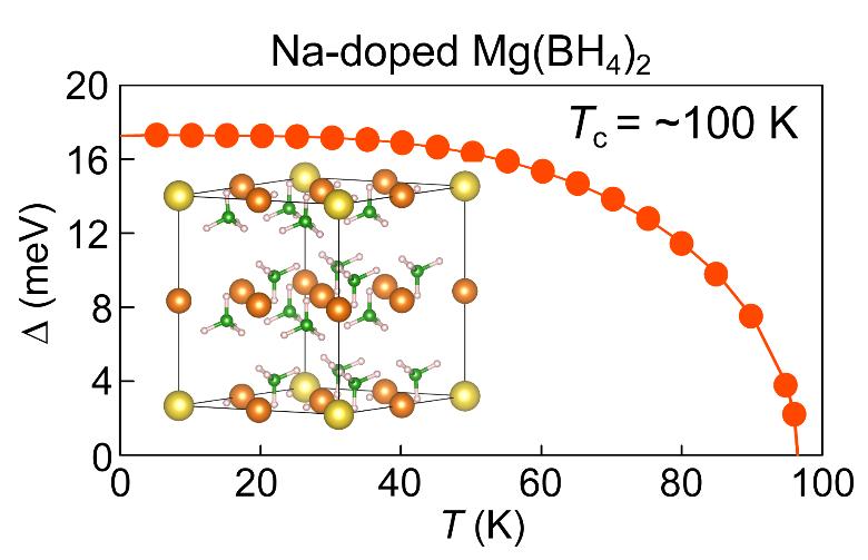 图1:Na掺杂的Mg(BH4)2在常压下超导转变温度达到了约100 K。