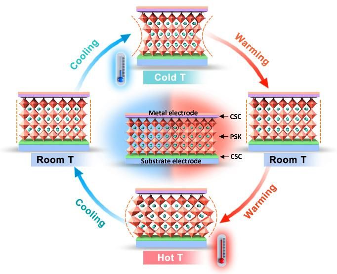 随着钙钛矿光伏技术的快速发展,其能量转换效率已接近硅基太阳能电池,但在稳定性方面仍面临挑战,尤其是在温度循环的环境下,钙钛矿材料及其器件的性能易受到影响。该研究系统地分析了温度循环对钙钛矿光伏器件的结构和性能的影响,重点探讨了晶体结构的变化、界面反应、离子迁移等因素如何加速材料的退化。