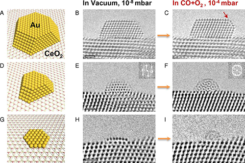 图1. 不同尺寸的金颗粒在一氧化碳氧化反应中的动态变化
